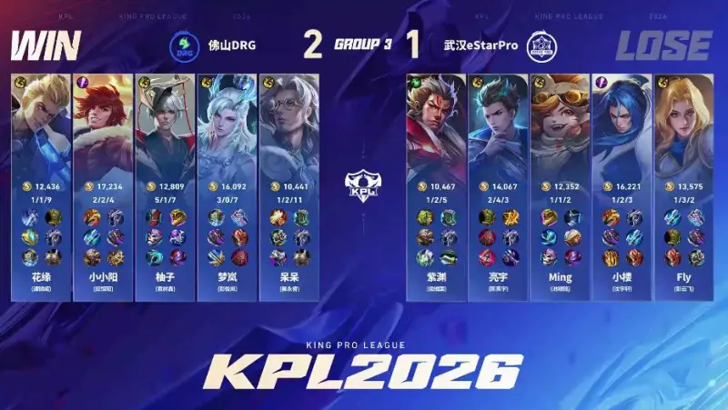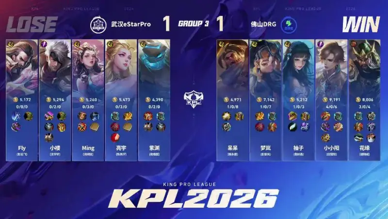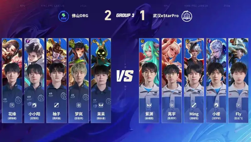 点击链接,讨论本场比赛选手表现>>王者荣耀职业联赛春季赛(BO5)Game1:蓝方:武汉eStar Pro红方:佛山DRG【Ban/Pick】蓝色方禁用:元流之子(辅助) 苏烈 镜 关羽 狂铁选用:Fly影 小楼大司命 Ming小乔 亮宇戈娅 紫渊空空儿红色方禁用:鲁班大师 盾山 曹操 橘右京 吕布选用:花缘夏洛特 小小阳宫本武藏 柚子沈梦溪 梦...