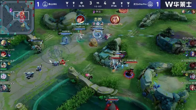 ES拿下十分钟暴君,柚子嬴政大招扫死亮宇狄仁杰,ES反打打出一换二