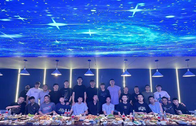 8月30日晚上,辽宁男篮在主教练杨鸣和队长韩德君的组织下,一起聚会吃饭。