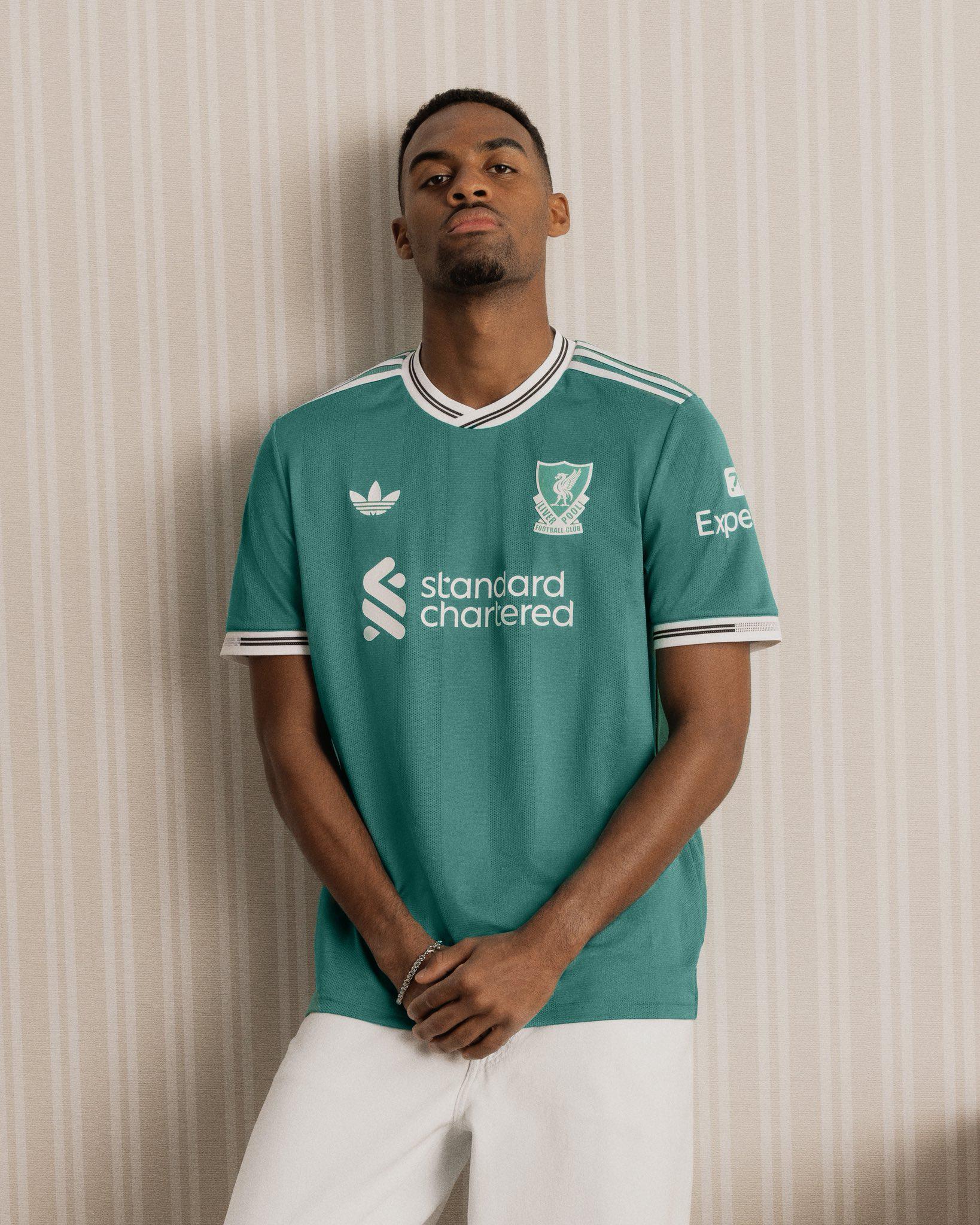 雷速体育9月9日讯 利物浦足球俱乐部官方于今日发布了25/26赛季的第二客场球衣,采用青绿色+白色的搭配,整体复古感十足。 这是Adidas为利物浦在本赛季推出的第三款球衣,也是本赛季首款使用“三叶草”复古logo的利物浦球衣,同时利物浦的队徽也相应地回归了80-90年代的经典样式。球衣采用了清新感十足的青绿+白配色,领口、袖口的则另有黑色的条纹作为点缀,...