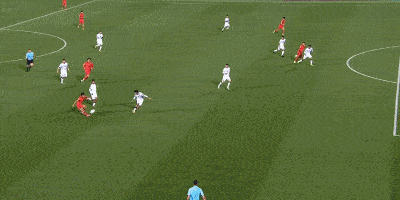 第74分钟,王钰栋与队友撞墙配合后,突破过人下底传中,皮球被封堵出界。