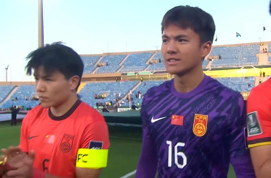 中国队首发:16-李昊、2-胡荷韬、3-贺一然、4-吾米提江、15-彭啸、17-鲍世蒙、6-徐彬、13-王博豪、20-李镇全、9-拜合拉木、10-王钰栋